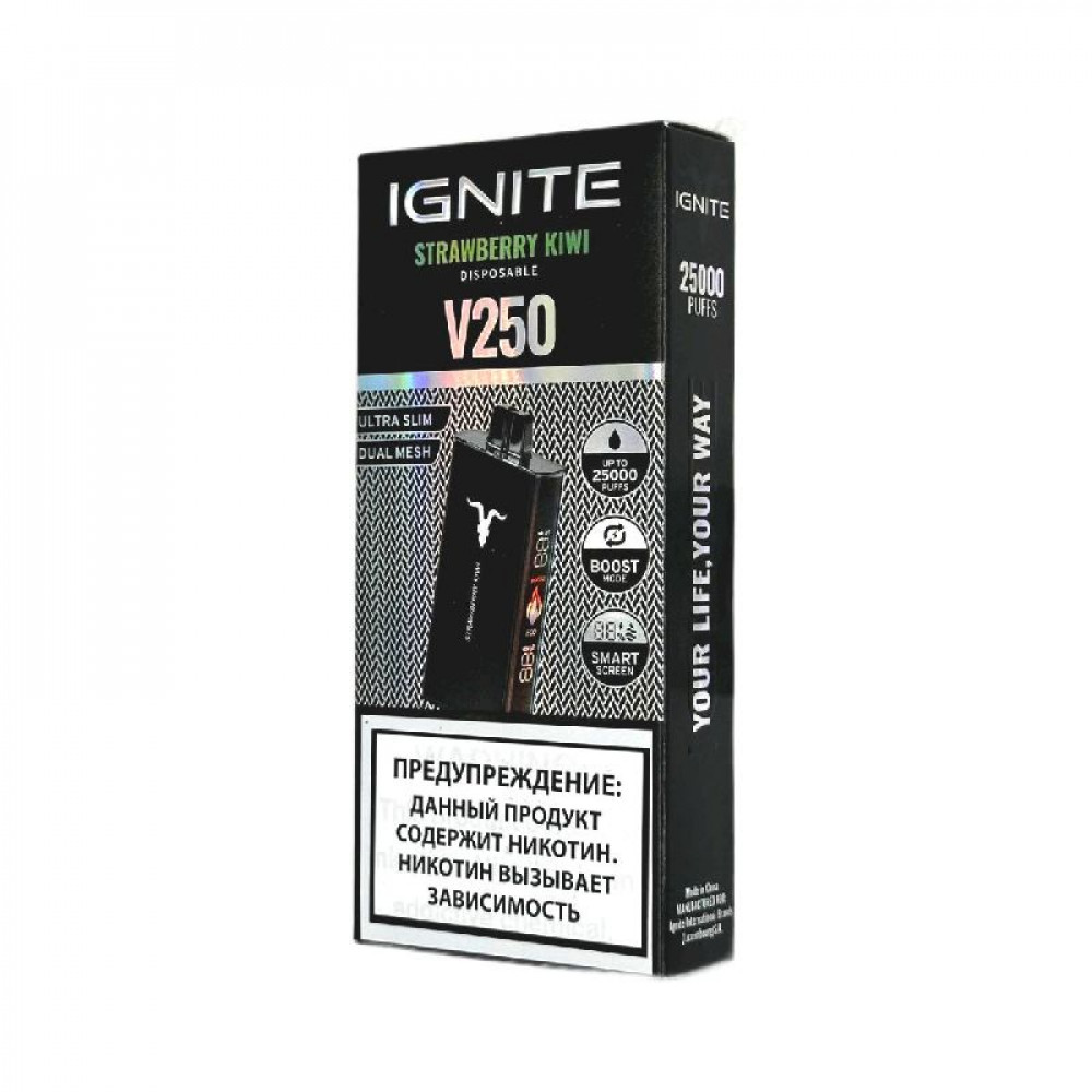 • Электронная сигарета Ignite V250 Black 25000 - Strawberry Kiwi (Клубника киви)